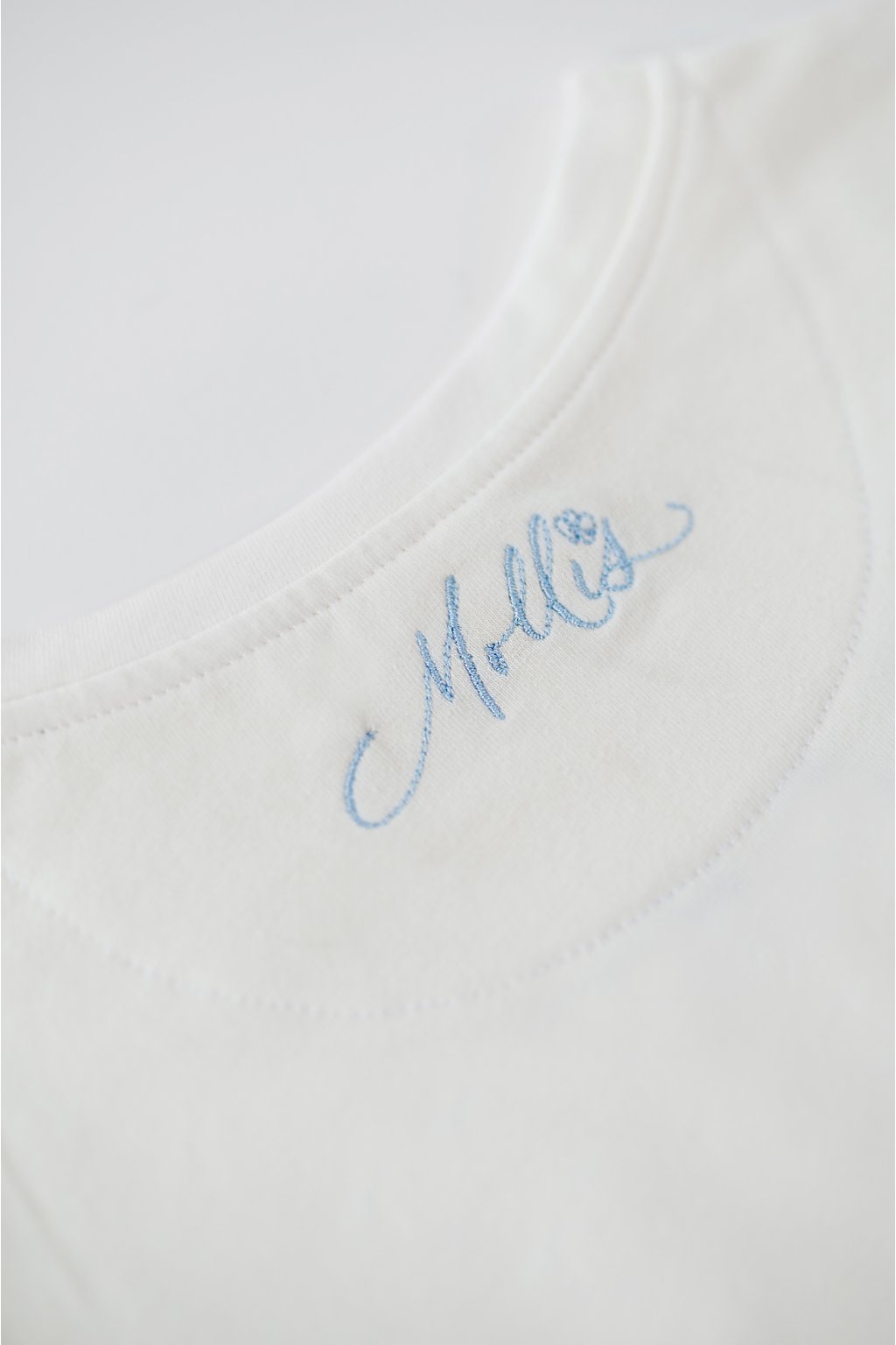 To, co dělá šaty Otisk volnosti skutečně jedinečnými, je možnost personalizace výšivkou jména. Vyberete si barvu i styl písma a vytvoříte tak kousek, který ponese osobní otisk vašeho dítěte. Díky tomu se z běžného kousku stává osobní vzpomínka. Šaty, které mají opravdu příběh a to ten váš.